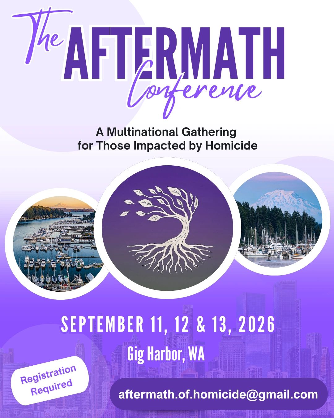 The Aftermath Conference, a multinational gathering for those impacted by homicide, will take place September 11–13, 2026, in the serene coastal community of Gig Harbor, Washington.
